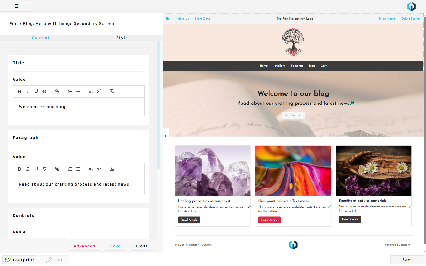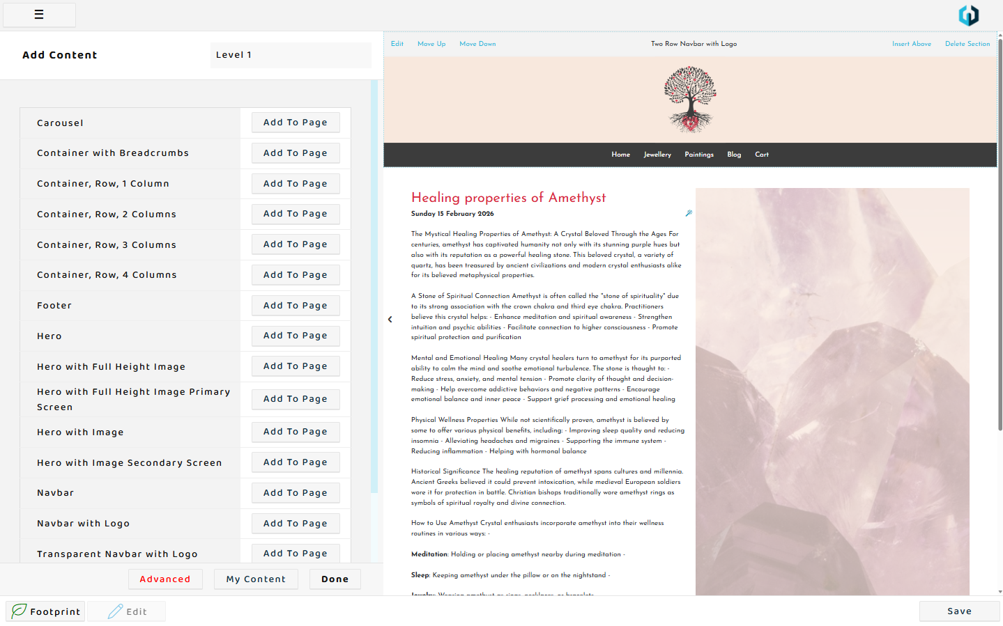 Paragraphs, titles, buttons and even links can be simply clicked and typed over to edit the text content.
