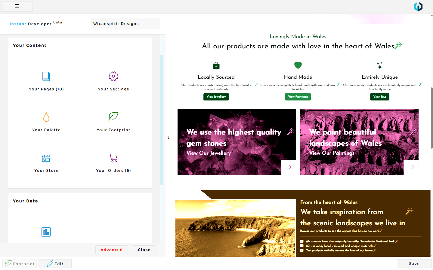 You'll also notice a blue magic wand next to any text with five or more words which when clicked will prompt you to type what you want to be written using the build in Instant AI content generator.